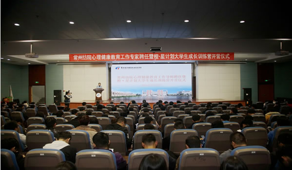 12月5日,常州纺院大学生心理健康教育导师聘任暨“橙星计划”成长训练营开营仪式在图文报告厅隆重举行。全国高职院校心理健康工作委员副主任委员陶爱荣、苏州大学苏南地区大学生心理健康教育研究中心副主任王静、常州市心理学会副理事长兼执行秘书长田江春、常州市心理学会大学生心理专业委员会主任张冬梅、中国心理学会注册心理督导师吉梅、常州心理学会心理咨询专委会副秘书长徐晓菁、中国人民解放军联勤保障部队第904医院心理咨询中心心理咨询师梁缘及我校副院长张震宇、学工处处长夏斌、学工处副处长兼大学生心理健康教育中心主任乔丽娟、各二级学院分管书记等参加活动。