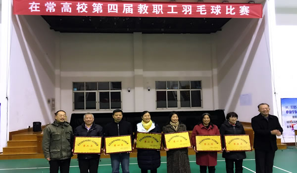 12月8日,“在常高校第四届教职工羽毛球比赛”在江苏理工学院拉开帷幕。此次大赛由常州市教育工会主办,全市共有11支代表队近200名运动员参加比赛。在学院领导的关心和支持下,工会和教工羽乐俱乐部精心组织、积极安排,我校教职工羽毛球队在赛前积极训练,在比赛过程中奋勇拼搏,团结协作,最终取得了团体第三名好成绩。供稿:工会;审核:曹为成