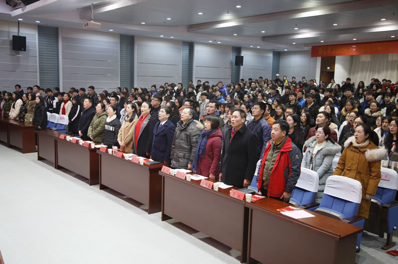 1月4日下午15:30,我校“收获·成长·感恩——2018年学生表彰大会”在图文报告厅隆重举行,学院党委书记蒋心亚、副院长张震宇,学工处处长夏斌、宣传部部长李洁琦、教务处处长夏冬、团委副书记李凯,各二级学院相关领导,全体辅导员及400多名学生代表参加了大会。夏斌主持表彰大会。