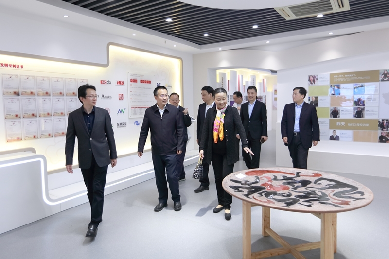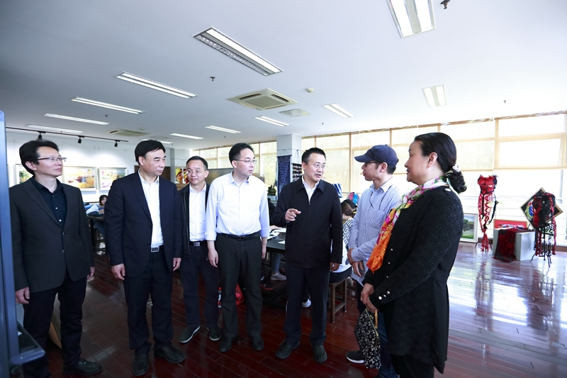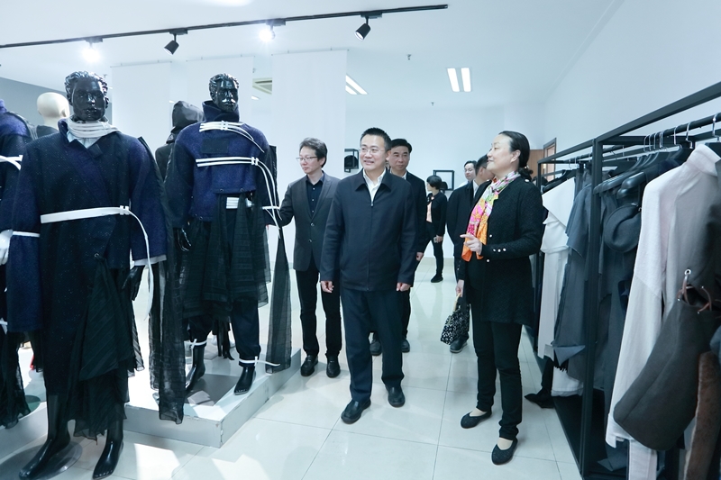 调研期间,蔡长华一行考察了我校文化展示中心,先后参观了学校校史陈列馆、面料陈列馆、服饰文化馆(含京剧馆)、服饰品工作室、皮具设计工作室、时尚礼品设计工作室、纤维艺术工作室、张学义艺术工作室等场馆。结合各场馆及工作室建设,蒋心亚、洪霄向蔡长华一行介绍了我校整体办学情况、办学特色、人才培养、创新创业、校企合作与社会服务等情况。