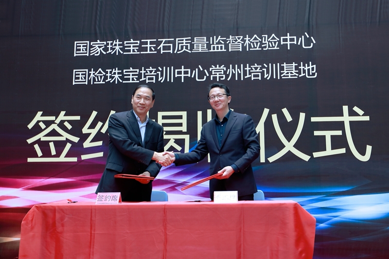 会上,洪霄院长与李宝军主任为国检珠宝培训中心常州培训基地举行了签约仪式并揭牌;黄建德主席和洪霄院长为溧阳玉研究所进行了揭牌。