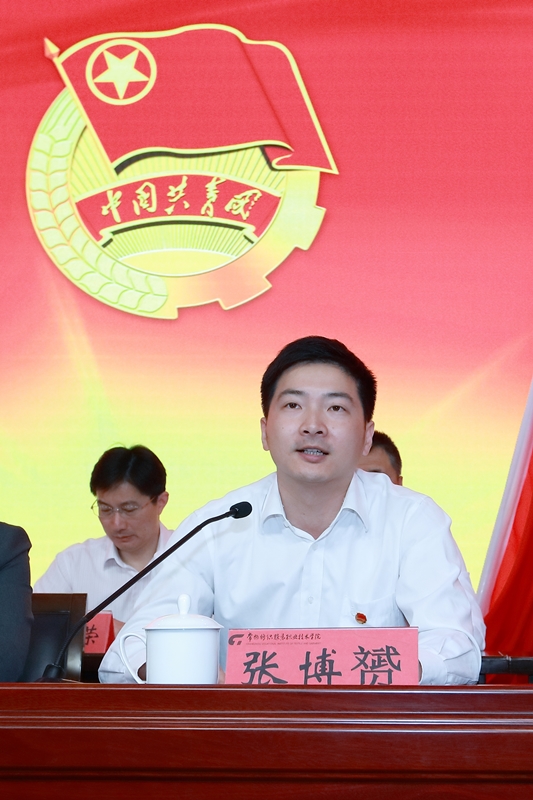 张博赟在讲话中充分肯定了我校多年来的办学成果,对我校共青团在学校改革发展和推进全市学校共青团工作发展中作出的常州纺院特色贡献给予了高度评价。他希望我校团学组织深化改革,服务大局,建设青年身边的共青团;希望全体团学干部不忘初心,牢记使命,努力成为青年信赖的主心骨;希望广大团员青年志存高远,勇挑重担,用青春力量建设强富美高新常州。