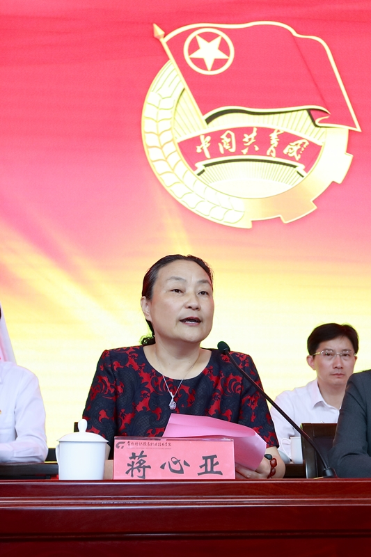 蒋心亚在讲话中指出,我校共青团组织是一支值得信赖、充满活力与战斗力的队伍,为维护学校改革发展与稳定大局、促进学校各项事业的蓬勃发展贡献了重要的力量。学校党委对本次团代会和学代会给予了高度重视和深切关心,她代表学校党委对学校共青团、学生会工作提出了殷切希望,要求全校青年高举旗帜,坚定信念,永葆紧跟党走的政治自觉;勤于学习、勇于实践,提升善作善为的能力水平;务实担当,鼓足干劲,开启砥砺奋进的崭新征程。