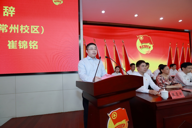 大会在嘹亮的国歌和团歌声中正式拉开帷幕。校工会主席曹为成代表群团组织致辞,河海大学(常州校区)团委书记崔锦铭代表兄弟院校到会致辞。