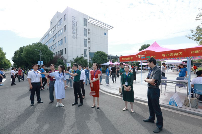 学校领导及相关部门负责人来到新生报到处,深入迎新现场与新生及家长亲切交谈,了解学生报到情况及新生入校后的生活情况,送上最真挚的问候与关怀。