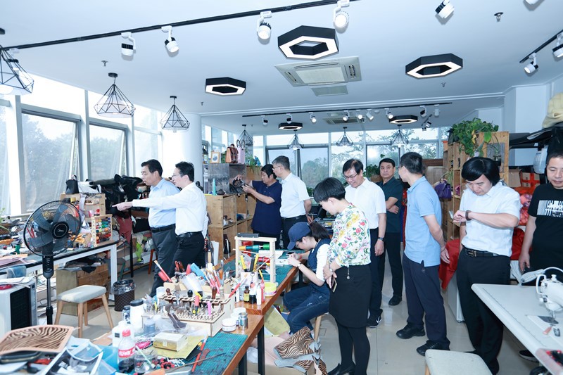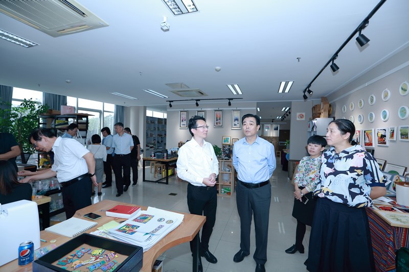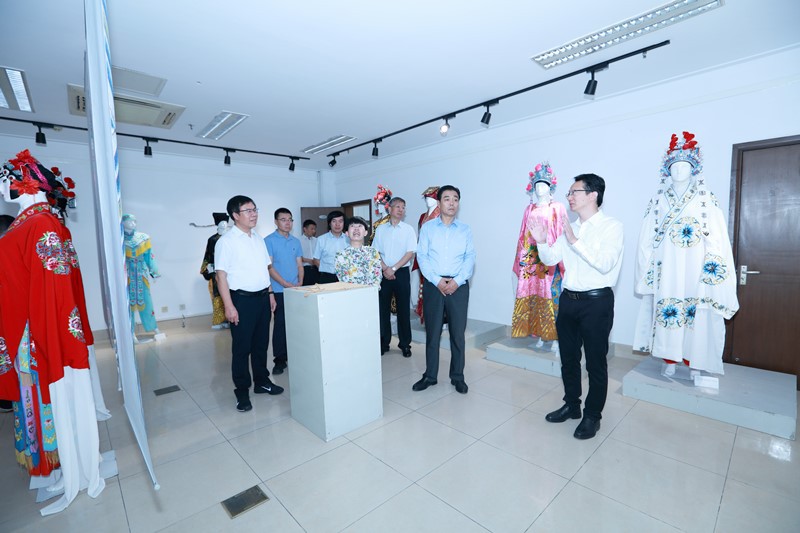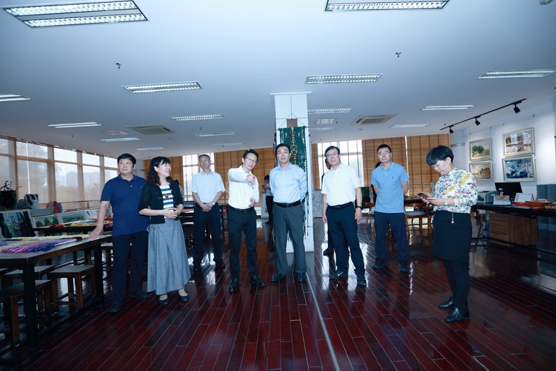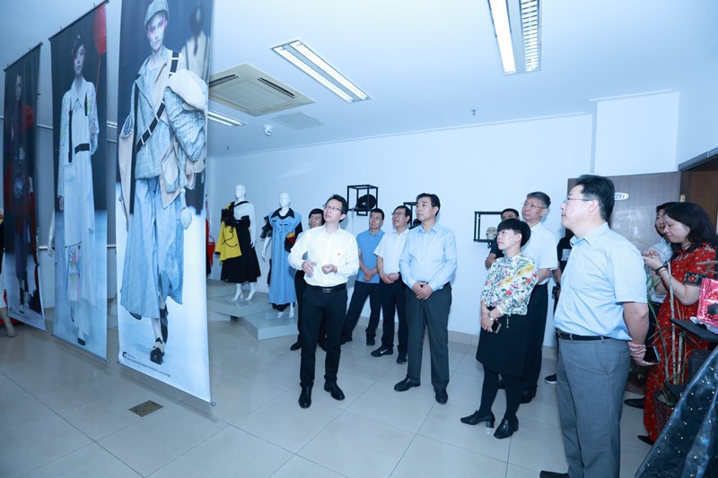 调研期间,杨忠华一行考察了学校文化展示中心,参观了学校校史馆、面料陈列馆、服饰文化馆、服饰品设计工作室、皮具设计工作室、时尚礼品设计工作室、纤维艺术工作室、张学义艺术工作室、动漫艺术馆等场馆。参观时,杨忠华与工作室的师生进行了亲切交流,对我校的办学特色及人才培养给予了高度评价。
