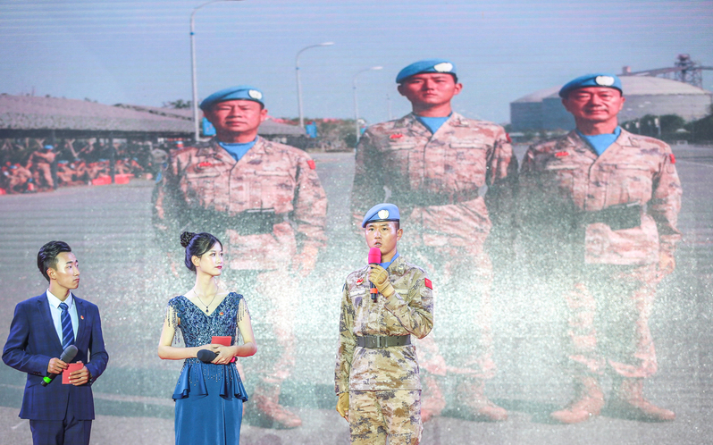 晚会现场,我校参加国庆阅兵载誉归来的黄凯同学和“中国大学生自强之星”荣誉称号获得者朱冰倩同学作为优秀大学生代表分别走上舞台,从部队和学校两种不同的学习生活体验向在场师生分享了属于他们的不悔青春,鼓励2019级新生把最深沉的爱国情感,化作最坚定的青春奋斗,用才华和能力报效祖国。