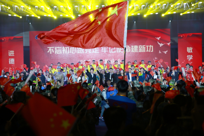 10月16日晚上6:30,我校“不忘初心跟党走 牢记使命建新功”2019级迎新晚会在体育馆精彩上演。江苏省委“不忘初心、牢记使命”主题教育第十一巡回指导组,学校党委书记蒋心亚,院长洪霄和全体班子成员,学校各有关职能部门、各二级学院负责人、辅导员、2019级新生及全体留学生欢聚一堂,共同观看了演出。