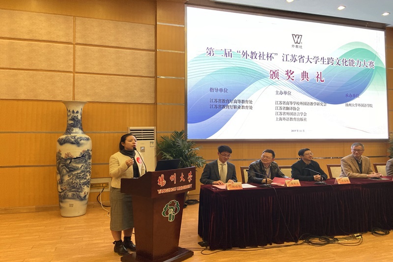 11月20日,由江苏省教育厅高教处指导,江苏省高等学校外国语教学研究会、江苏省翻译协会、江苏省外国语言学会、上海外语教育出版社共同主办的第二届“外教社杯”江苏省大学生跨文化交际能力大赛复赛与决赛在扬州大学落下帷幕。