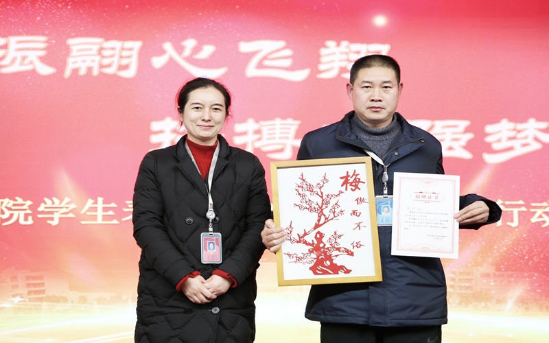 庄严雄壮的国歌声中拉开了大会帷幕。副院长张震宇宣读了《2019年度帮困资助工作总结及暖冬助学活动方案》,他从精准认定、精准资助和资助育人三个方面对我校2019年帮困助学工作进行了全面总结。由大学生资助管理中心拍摄的微电影《谢谢你,让我遇见更好的自己》重温了学校后服公司鲁志强老师的十年助学路,学工处副处长乔丽娟向鲁志强老师颁发了《捐赠证书》,并送上同学们亲手制作的凝聚着感恩深情的剪纸作品。四位学生代表精心创作并现场朗诵《丁香妈妈》,表达了对以“丁香妈妈”为代表的老师们的感恩之情。
