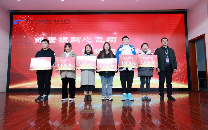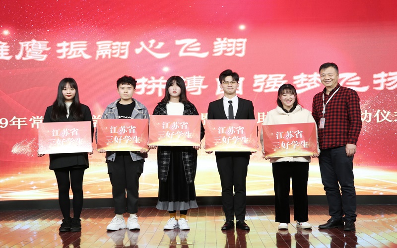 在学生表彰仪式环节,团委副书记朱鹏宣读了《2019年度常纺院国家奖学金、国家励志奖学金、省级三好学生、优秀学生干部、先进集体、校优秀学生奖学金以及文明班级的表彰决定》;副院长张震宇、组织部部长高江荣、宣传部部长夏斌、人事处处长赵振勇、保卫处处长罗卫东、校企合作处副处长蒋云松、招就处副处长顾加强分别为获得各级奖助学金及荣誉称号的学生代表颁发荣誉证书。党委书记蒋心亚为国家奖学金获得者颁奖并佩戴“学生资助宣传大使”绶带。国贸1731班邱有煊同学代表国家奖学金获奖者发言,他表达了对学校及老师的衷心感谢,分享了两年多的学习成长经验,并表示将坚定理想信念,努力充实提高自身,为学校发展争光添彩。