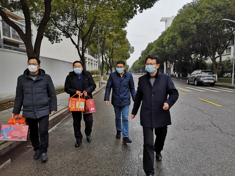 庚子鼠年第一天,院党委副书记、院长洪霄冒雨来到学校,慰问春节期间坚守岗位的教师,代表学校为他们送去节日的问候和新春的祝福。工会主席曹为成、保卫处处长罗卫东、后服公司直属党支部书记刘建平、副总经理管俊洛、工会委员、分工会主席朱海兵参加了慰问。