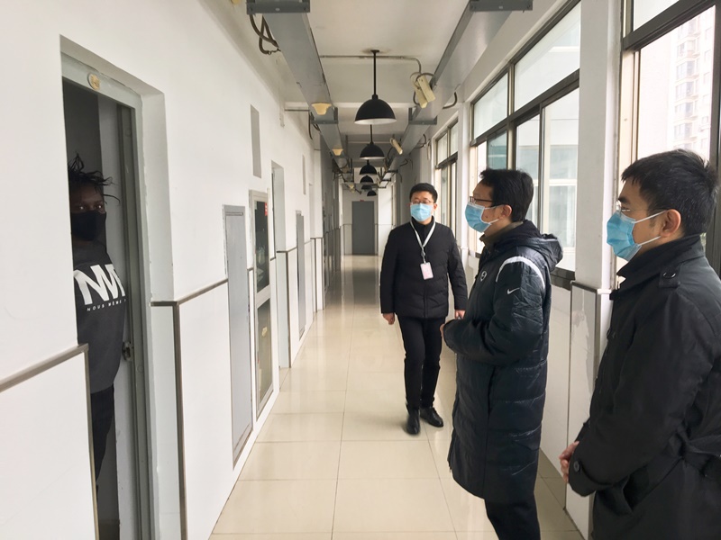 2月13日上午,院长洪霄、副院长张震宇,国际学院及后勤总公司相关负责同志共同前往留学生宿舍检查疫情防控工作,看望、慰问在校留学生。