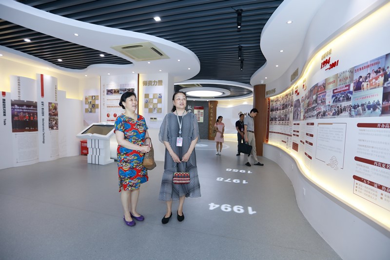 在蒋心亚书记等陪同下叶英姿副主席饶有兴趣的参观了文化展示中心各工作室。参观完毕后,叶英姿副主席在7405接待室与大家做了深入的交流。
