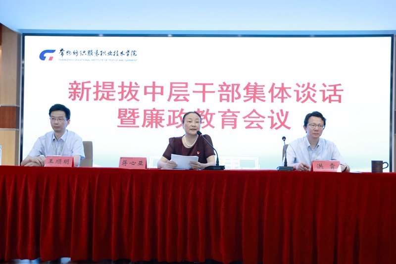 蒋心亚代表学校党委对履新任职干部进行任前集体谈话,她指出,这次中层干部的统筹调整,是学校党委着眼于加强学校干部队伍建设,希望新提任干部接受新的考验,承担新的使命,肩负新的责任。她对大家提出五点要求和希望:一是旗帜鲜明讲政治,要求大家提高政治站位,站稳政治立场,把准政治方向;二是敢于担当善作为,要求干部要明确任期内目标任务,主动谋划和推动工作,切实发挥示范表率作用;三是要凝心聚力带团队,要求干部做到思想上合心、行动上合拍、工作上合力,班子成员要团结一致带好团队;四是要提升能力强本领,最主要是要增强学习本领,成为业务的“行家里手”;五是要修身立德作风正,始终做到自重、自省、自警、自励。