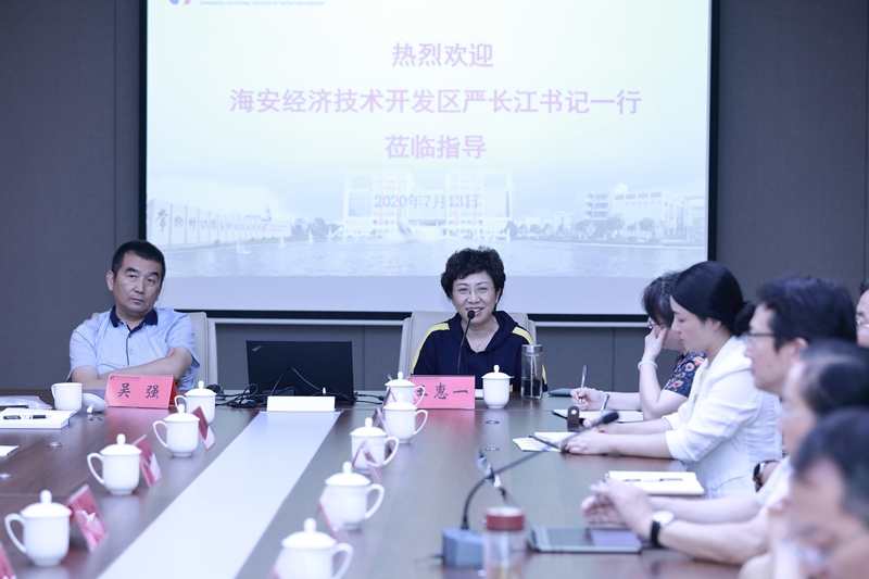 7月13日上午,海安市委常委,海安经济技术开发区党工委常务副书记严长江同志率代表团来我校调研交流。常安纺织工业园区的34家企业的负责人及代表同行,我校院长洪霄、副院长赵玲珍、张文明及教务处、科研处、继续教育学院、纺织学院相关领导参加了交流活动。