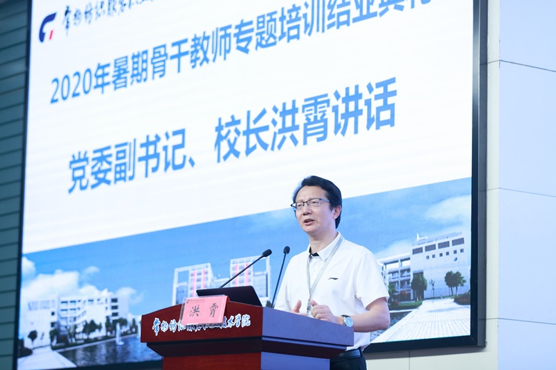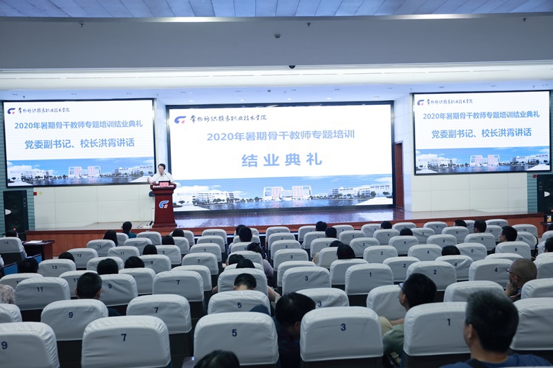 7月18日下午,我校骨干教师培训班在图文报告厅顺利结业。党委副书记、院长洪霄出席了结业典礼,学校130余名骨干教师参加,党委委员、副院长赵玲珍主持会议。