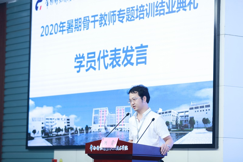 洪霄代表学校作了讲话。首先,他对学员代表的发言和培训工作给予了充分肯定,赞赏了学员的发言既有理论高度又有广度和深度,其次,他希望教师发展中心能够为老师量身定制出更合理更有针对性的培训方案。最后,洪院长从自身工作目标谈到学校、学生及专业建设工作目标,并对学校高质量发展提出了新的工作目标、任务和要求。