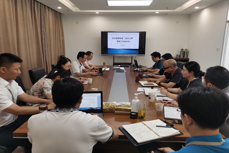 为进一步健全和完善学校规章制度体系,提升制度建设工作水平,推动学校规章制度“废改立释”工作,9月4日上午9:00,学校规章制度建设课题工作组在1746会议室召开研讨会。会议由党政办主任赵振勇主持,洪霄院长及课题组相关人员参加了会议。