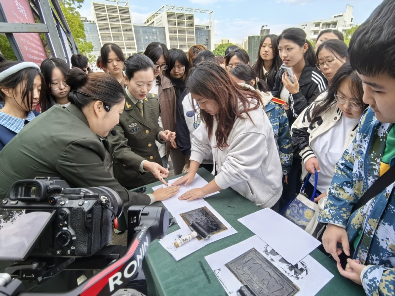 此次展览突破了传统的“版面+展柜+解说”模式,引入多种多媒体元素,增强了展览的互动性和体验感。展览配套设置了情景微党课、拓印体验等互动环节,以可亲可感的方式让观众获得难忘的观展体验。在展览尾厅,策划者还精心安排了打卡点,让观众记录下自己的观展足迹。创新展陈方式使静止的史料变为生动的教材,让红色资源成为“大思政课”的精神引擎,增强了思政教育的亲和力和针对性。